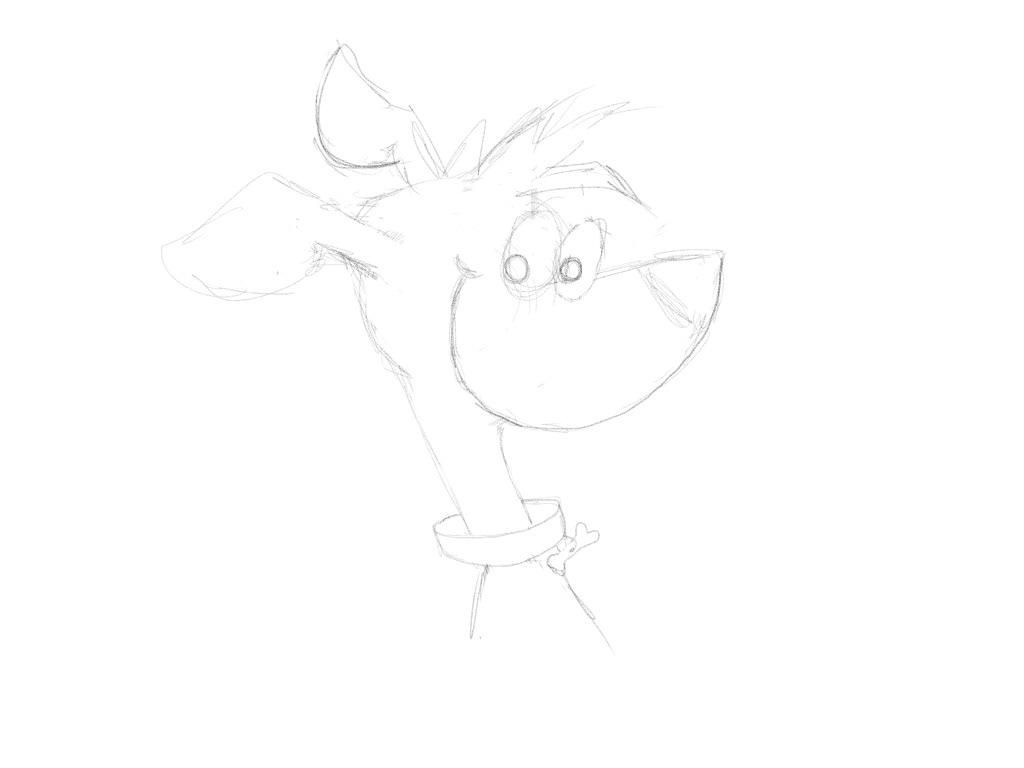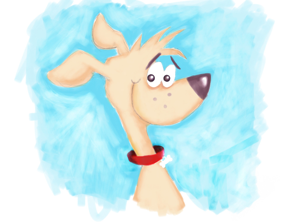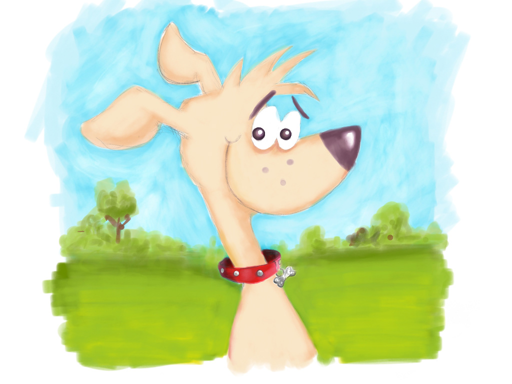 Cartoon sketch of one of my dogs—Jessie—who is the naughtiest but also completely adorable. She's a lively character!